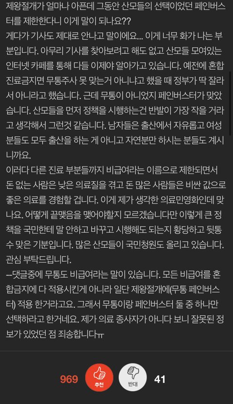 +댓글 중에서 페인 부스터 안 맞아도 출산 잘 한다와 비슷한 내용이 많아서 추가합니다,