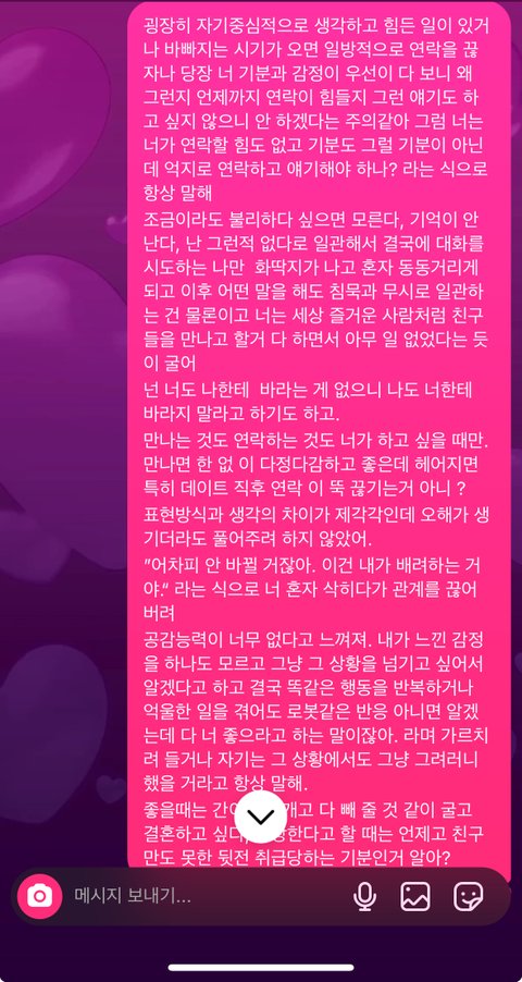1년된 남친이랑 연락 문제로 다투다가 얘가 잠수를 타버려서 또 나만 감정 썩히는 중이야