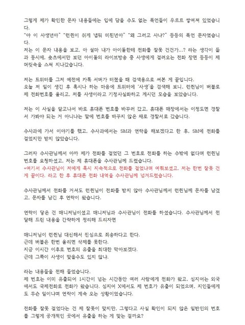 버블에 번호 공개한거부터가 별로임 사실상 팬들한테 얘 패달라고 요청한거잖아 진짜 경솔하다 일반인은 뭔 잘못임