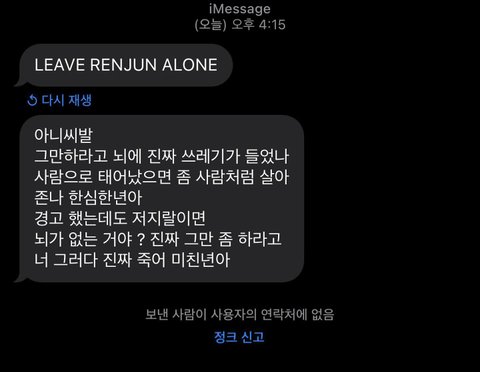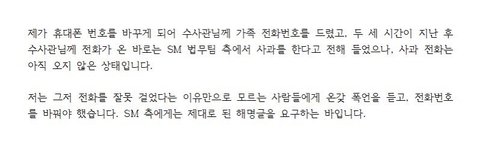 본인이 정신병 있는 건 저 피해자분 알빠 아니고 ㅅㅂ 전번 뿌린 건 ㅈㄴ 황당하네 지 팬 수만명한테 일반인 하나 달려가서 죽이라는건데