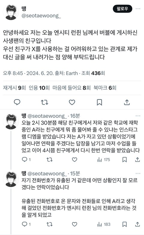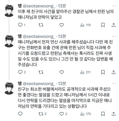 런쥔 사생번호 공개함