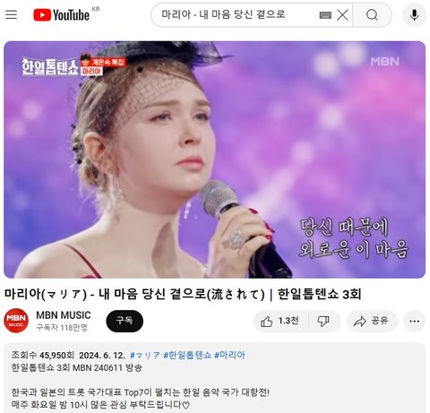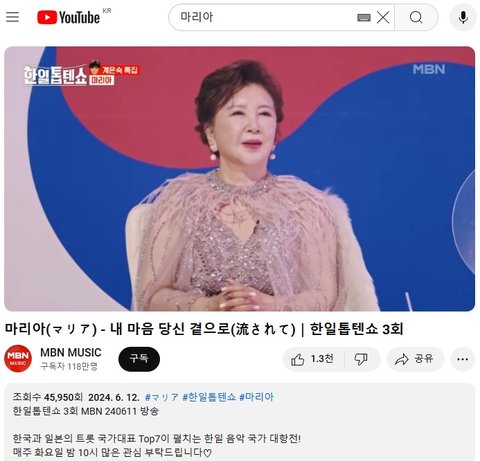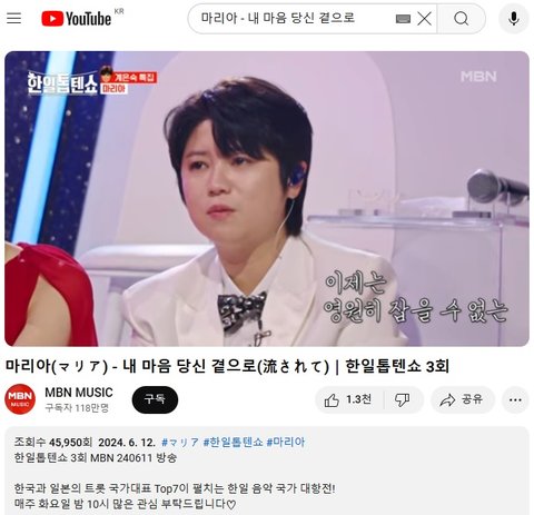 (사진2~5 설명) 마리아(マリア) - 내 마음 당신 곁으로(流されて)|한일톱텐쇼 3회 계은숙 특집 YouTube MBN 동영상 화면 캡춰