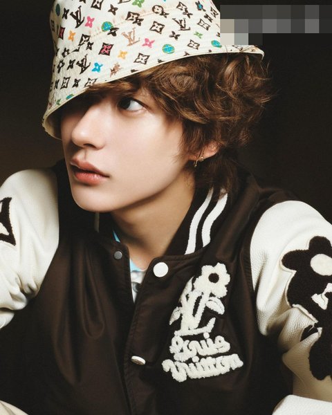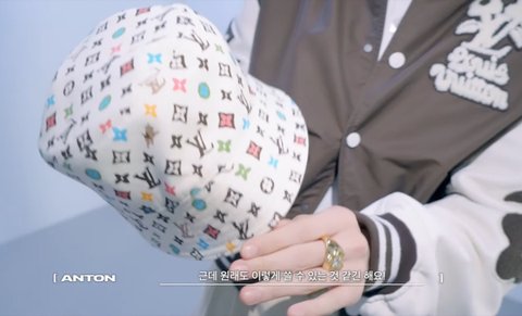 루이비통 화보 컨셉에 맞게 꼬불 머리 헤어스타일 + 모자도 포인트가 없어보여서,