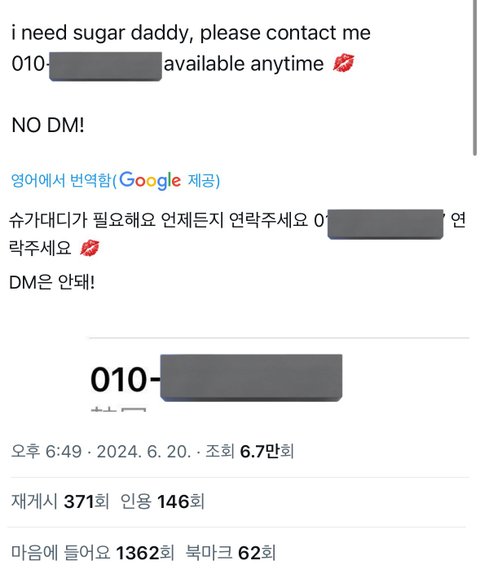 피해자 번호 성매매 사이트에다 올리는중 ㅋㅋㅋㅋ 그분 미자인데 선넘네