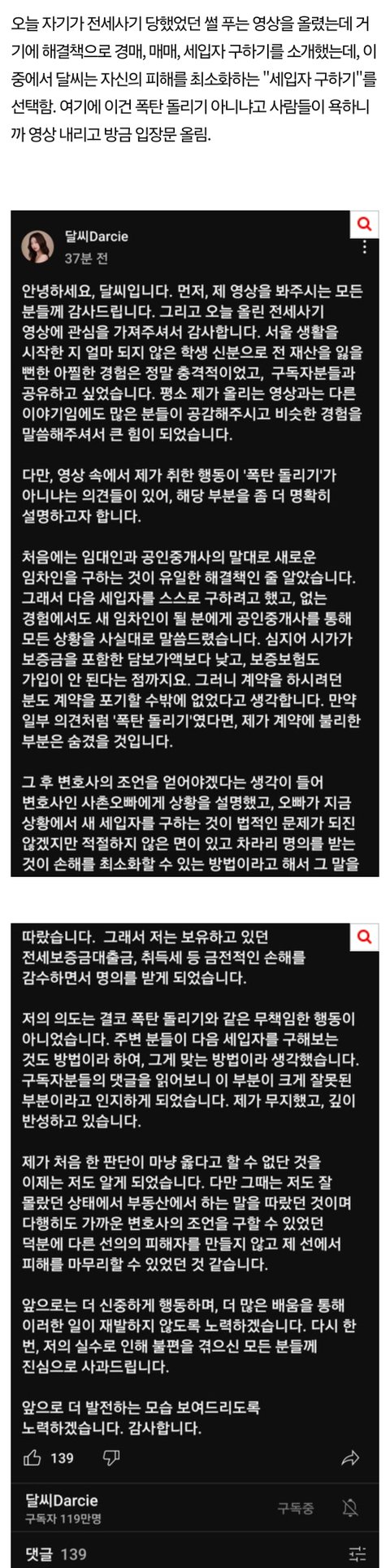 다 알았으면서 해명문에는 몰랐다는 식으로 말하는게 ㅈㄴ.... 본인이 당했으면 얼마나 힘들고 ㅈ같은지 알텐데 다른 사람한테 폭탄 넘기고 본인만 살려고 하는데 진짜 정떨ㅋㅋㅋ... 전세사기범이랑 다를게 뭐가 있음