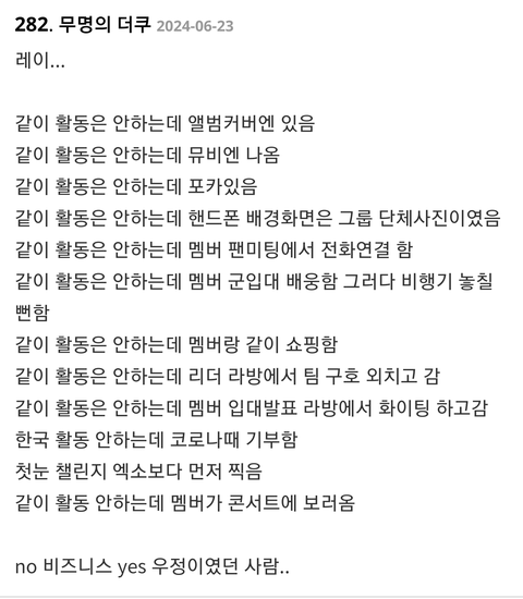 누가몰라 쟤들 사이 좋아 근데 그게 비즈니스에 도움이안돼 레이랑 친한데 어쩌라고ㅋㅋㅋㅋ그렇다고 레이가 엑소활동 소홀한게 사라짐? 찬열첸은 또 어떻고ㅋㅋ쟤들 끈끈한 우정덕에 비즈니스가 ㅈ됨 진짜 팬이면 비즈니스 관계인것보다 진짜 친한게 좋은거라고 말할수가 없지ㅋㅋㅋㅋ엑소 네임값을 팬이 돈써서 만들어주는데