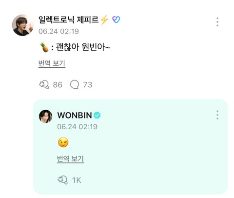 이건 어제 위버스 댓글 중 1개인데 좀 커엽고 어이없길래 ㅋㅋㅋ