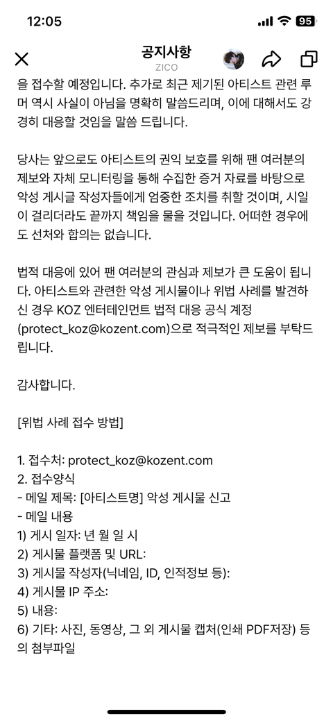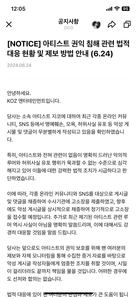 루머 사실 아니고, 엄중한 조치 취할 거고 선처는 없대