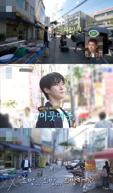 그렇게 장 보고 집에 가는 길 무언가 발견하고 도망갈까 말까 고민하는 도영