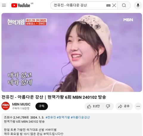 (사진4 설명) 전유진 - 아름다운 강산|MBN현역가왕 6회 MBN 240102 방송 YouTube MBN 동영상 화면 캡춰