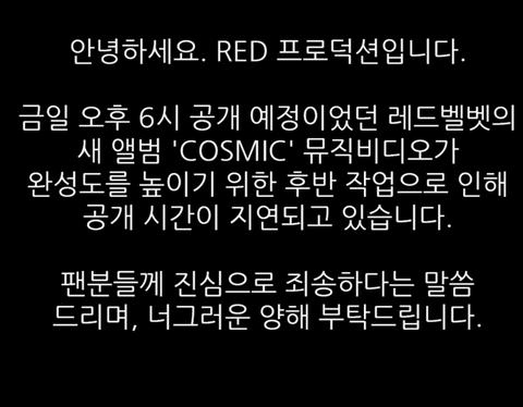 레드벨벳 뮤비 지연 공지