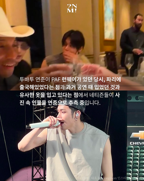 연준 종일 인터뷰 불려다니따 패션쇼 감상하고 갓세븐 잭슨 브랜드쇼에서 사진 한장 남기고 바로 호텔 들어가는 거 까지 실시간으로 중계됐는데 쟤가 뭐 연준이랑 같은 패션쇼 봤다구 연준을 만난거겠냐ㅋㅋㅋㅋㅋㅋㅋㅋ 연준이는 심지어 엠버서더로 간거라 좌석 위치도 아예 달랐을텐데 뭐