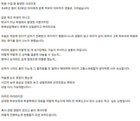 또라이는 학원 말고 병원을 다녀야 할 것인데 어찌하여 멀쩡한 남의집 귀한 자식 얼굴을 저모양으로 만들어놨어. 그 부모 얼굴에 똑같이 그어줘야하는데!!!!!
