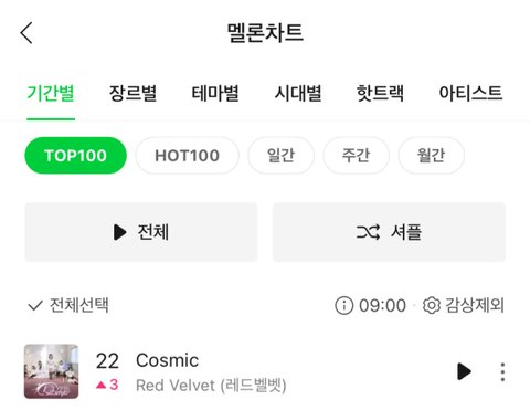 레드벨벳 'Cosmic' 멜론 탑백 22위 피크