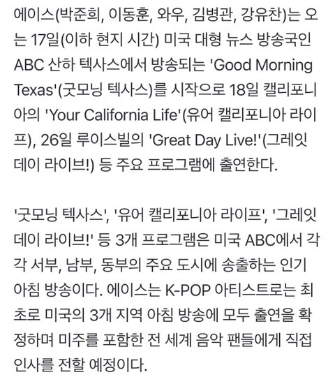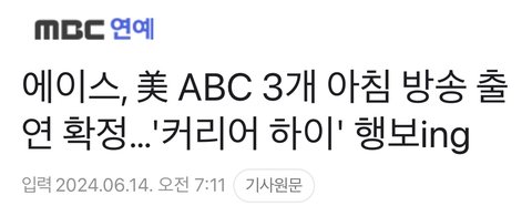 에이스, ABC 3개 아침 방송 출 연 확정...'커리어 하이' 행보ing