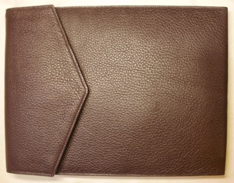다크 브라운 컬러 부드러운 엠보싱 천연 가죽으로 제작한 태블릿 피시 가방입니다.(마디샤가죽공예)