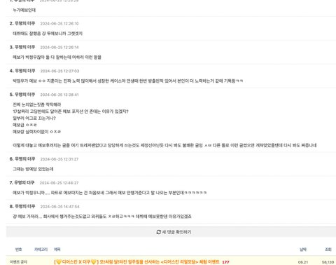 ㅋㅋㅋㅋㅋㅋㅋㅋㅋㅋㅋㅋㅋ 박지훈주제를 알라는 식으로 댓글 계속 마지막에 달림ㅋㅋㅋ