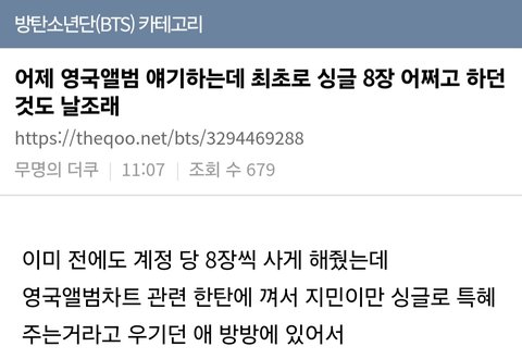 계속 지민만 차별 당하고 있다고 다른 멤버들이랑 비교하면서 큰일난 것처럼 하던데 왜 사실이 아닌 걸 사실처럼 물타기 시키는지 모르겠다