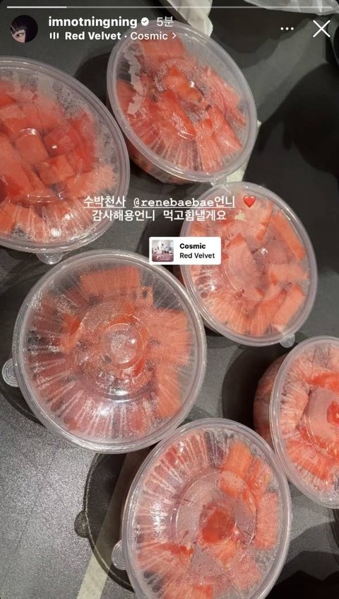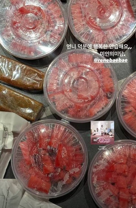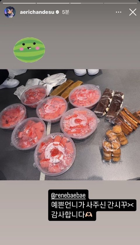 오늘 에스파 콘서트 연습한다고 해서 아이린이 에스파들한테 간식 사줬나보네 따숩다 근데 아이린이 상징과일이라서 수박 사주는건가?