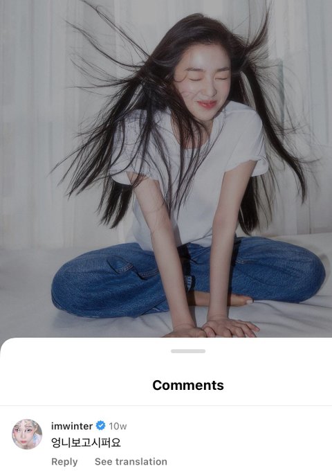 저번에는 원터가 아이린 인스타 게시물에 댓글도 달았었음