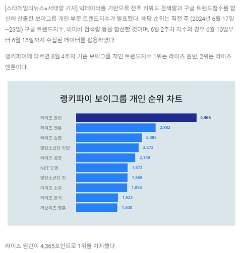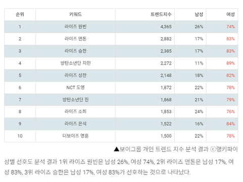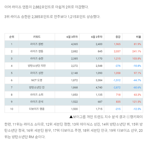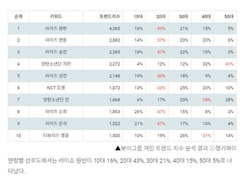 10위권내에 라이즈 6명 순위에들었네