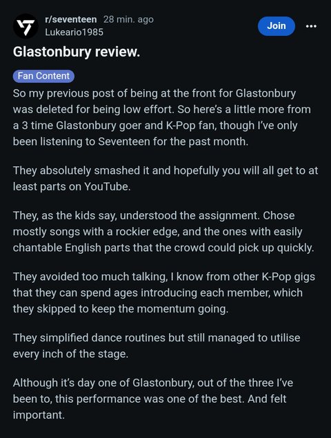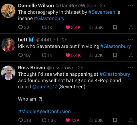 난 매년 코첼라 글래스톤 롤라 다 챙겨보는 케이팝덕 팝덕 락덕이라서 익숙하지만 캐럿들은 거의 한국 음방mr제거 듣는 느낌이었을 것 같음 그정도로 라이브가 이질적일 정도로 선명하게 들렸는데도 안무너지더라 라이브 음원이랑 똑같아서 놀랐음 솔직히 승관만 잘하는 줄 알았는데 다 걍 음원이었음