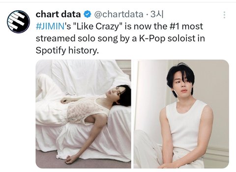 스포티파이 역사상 가장 많이 스트림된 케이팝 솔로곡=지민이 솔로 1집 타이틀곡♡