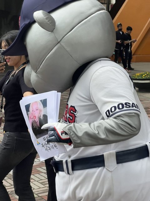 윈터 두산베어스 시구 기원 전단지 들고 다니네ㅋㅋㅋㅋㅋ 이정도면 스엠아 윈터를 시구 보내주라