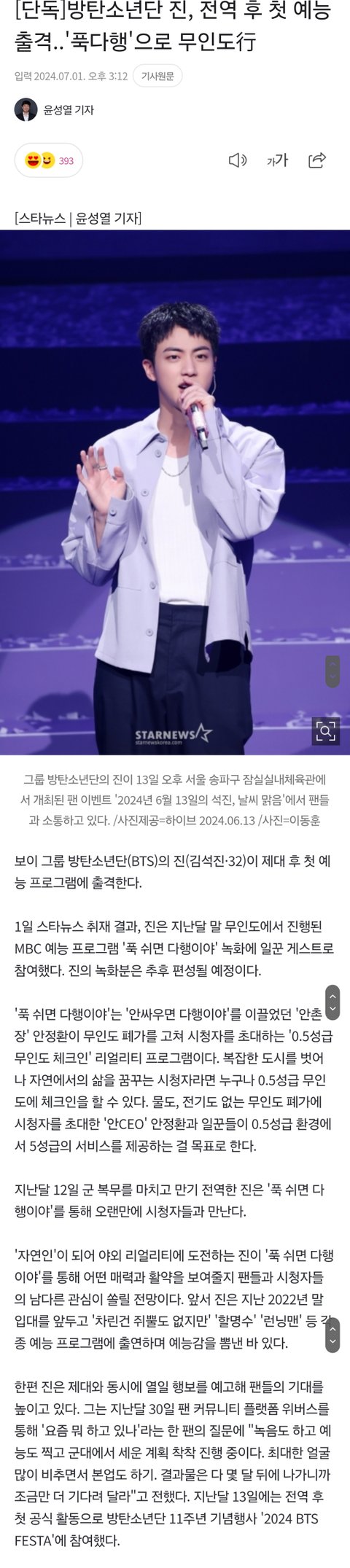 방탄 진 첫예능 MBC 푹다행 무인도 행ㄷㄷ