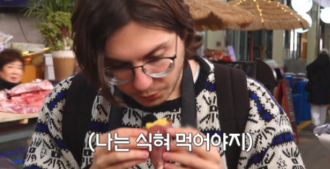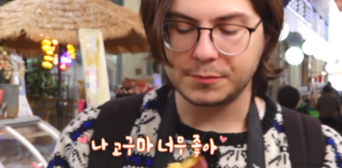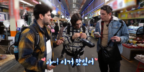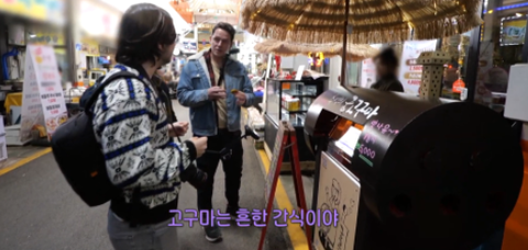 시장 구경하다가 군고구마를 발견한 미국 친구들
