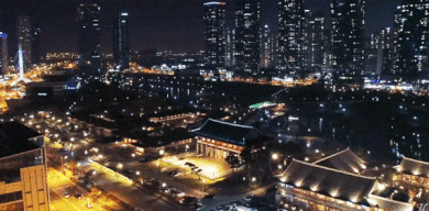 높은 빌딩들 중심에 위치한 한옥