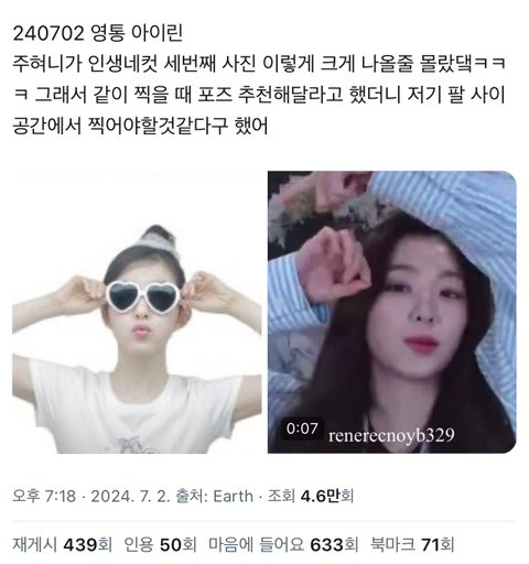 아이린도 사진 이렇게 크게 나올 줄 몰랐다고 함ㅋㅋㅋㅋㅋㅋㅋㅋㅋㅋㅋㅋ 개웃김