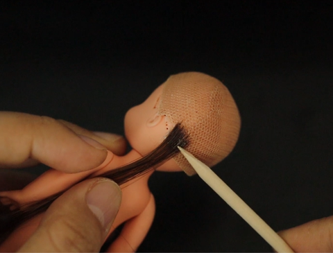 가발캡 위에 머리카락을 붙여줍니다