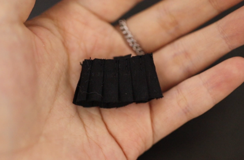 검정색 플리츠 미니 스커트를 입고 있는 모습입니다