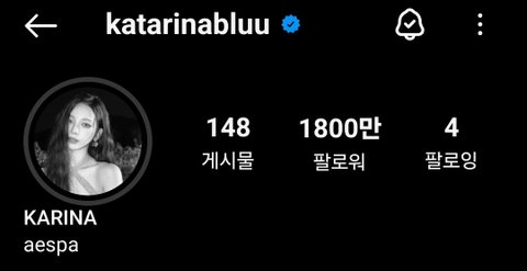 오늘 카리나 인스타 팔로워 1800만 돌파