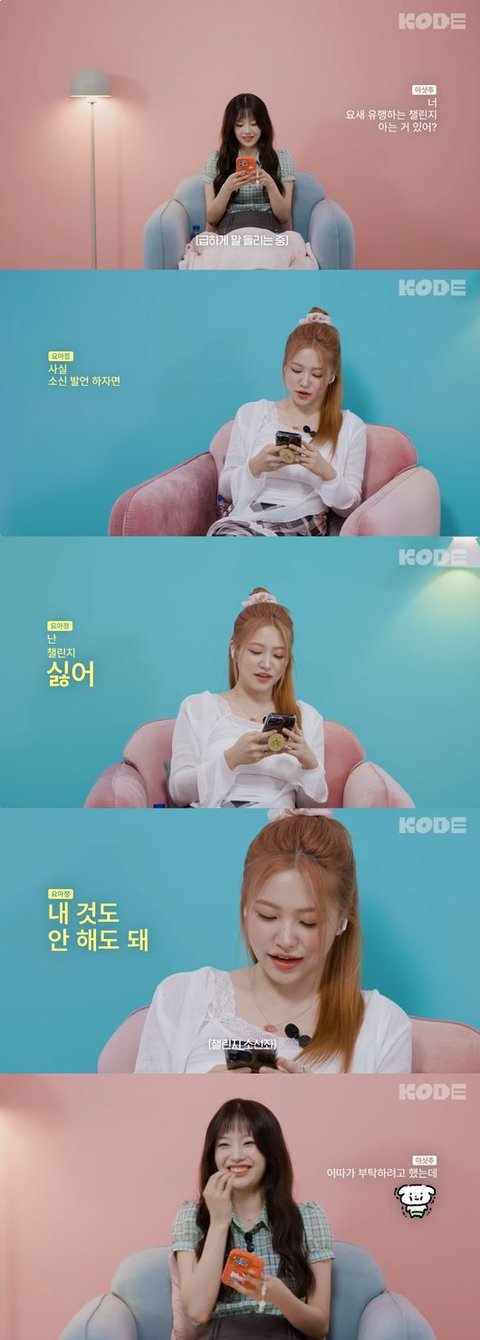 서로에 대한 힌트 없이 대화를 이어나가던 중, 츄는 "요즘 아는 챌린지 있어?"라고 물었다. 그러자 예리는 "소신 발언 하자면 나는 챌린지 싫어. 챌린지 하기 싫어. 내 것도 안 해도 돼"라고 쐐기를 박아 웃음을 안겼다.