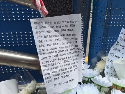 한 시민은 '이런 일이 다시는 일어나지 않는 세상이 되기를 바란다'는 내용의 쪽지를 남겼다. '너무 늦게 와서 미안하다. 보고 싶다'는 글도 있었다.