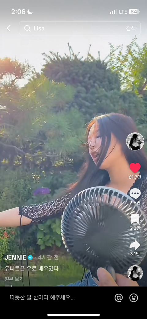 제니 새로운 틱톡 영상 뭐냐