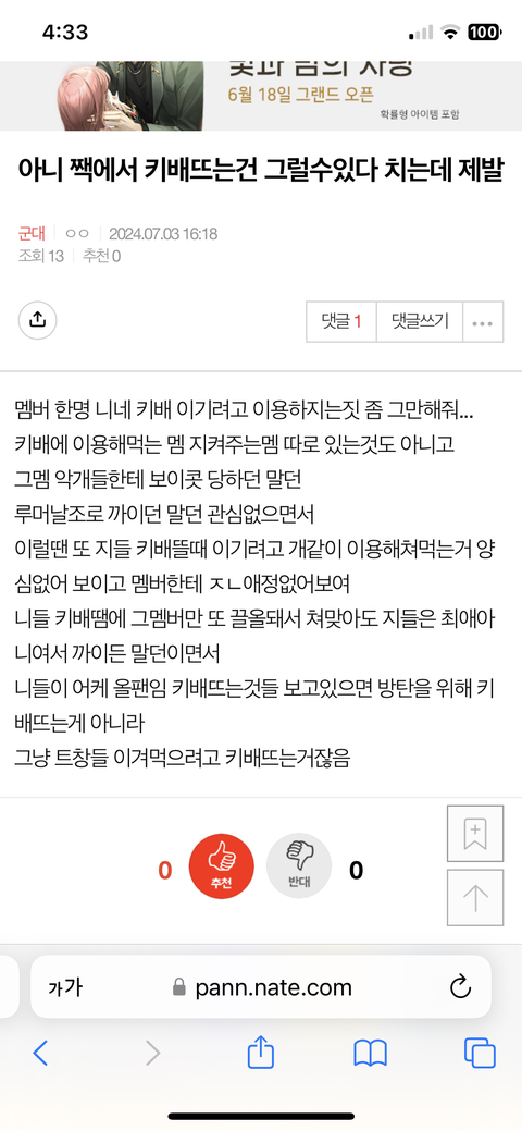아니 짹에서 키배뜨는건 그럴수있다 치는데 제발