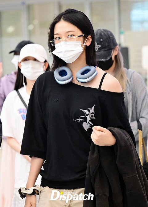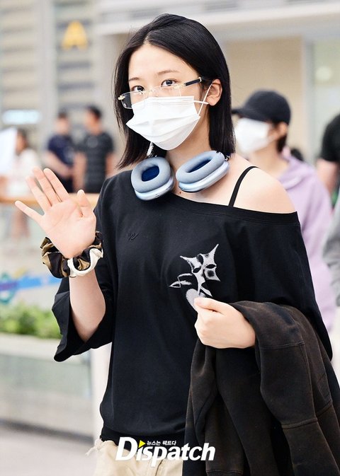 안유진은 마스크에도 청초한 비주얼로 눈길을 끌었다. 블랙 컬러의 원숄더 티셔츠와 안경, 헤드폰으로 연출한 센스있는 공항패션도 돋보였다.