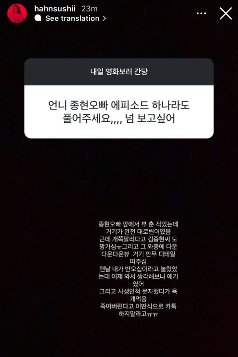 한서희 샤이니 종현하고 아는 사이인건 알겠는데 왜 한서희 말이면 찐이야!!무조건 사실!!거리면서 우기는 이유가 뭐임?ㅋㅋ한서희 개 뭐라도 됨?2017년도 탑사건,양현석 사건 땜에 그러는거?(이해불가)