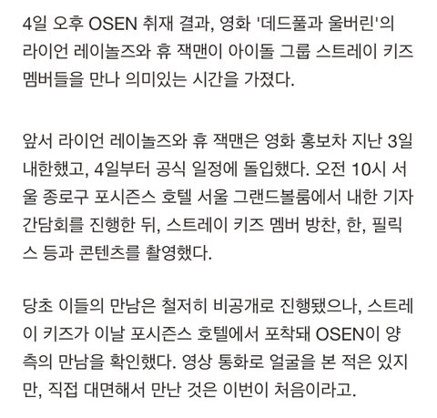 스키즈와 라이언 레이놀즈 왠지 케미가 잘 맞을 거 같음 ㅋ