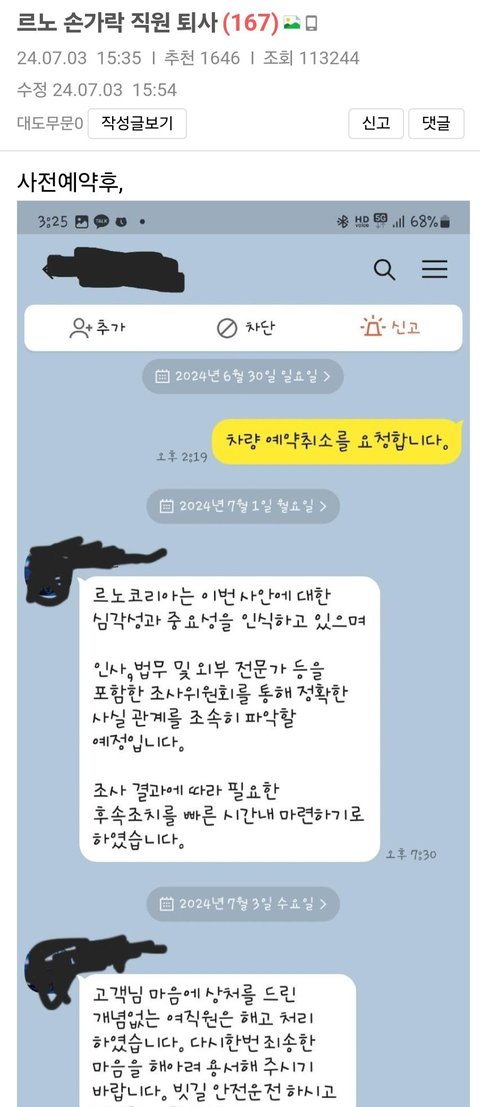10대판 수준ㅋㅋㅋㅋ 여직원이 공사구분 못하고 한 장난질에 1조5천억의 개발비, 3년간 회사 명운걸고 준비한 신차 프로젝트, 임직원 3천명의 밥줄이 한번에 날아가게 생겼는데 심각한게 아냐? 지금 콜레오스 공개되고 한창 프로모션 해야할 타이밍에 아무것도 못하고 본사 한국 철수하게 생겼는데ㅋㅋㅋ 더불어 앞으로 기업에서 채용할때 여자면 페미검증부터 들어갈텐데 니들 유리천장 두꺼워지는건 생각안해??