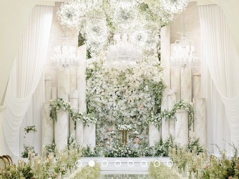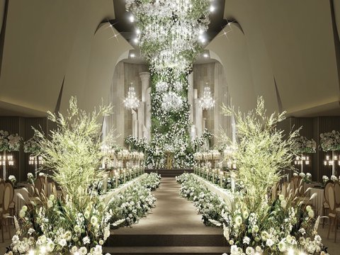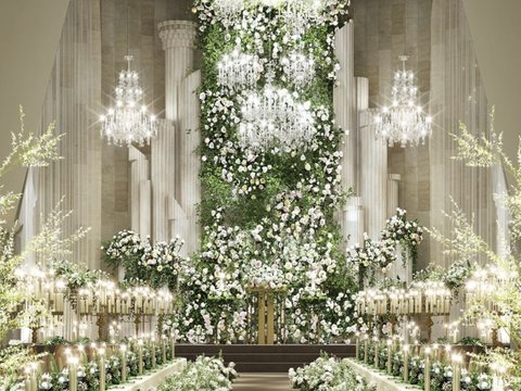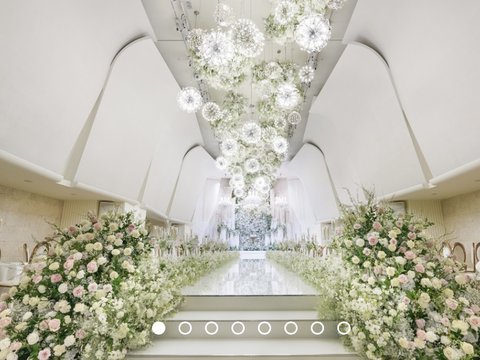 3. 버진로드를 따라 굴곡진 샹들리에 조명에서 민들레홀씨 일자 무더기.