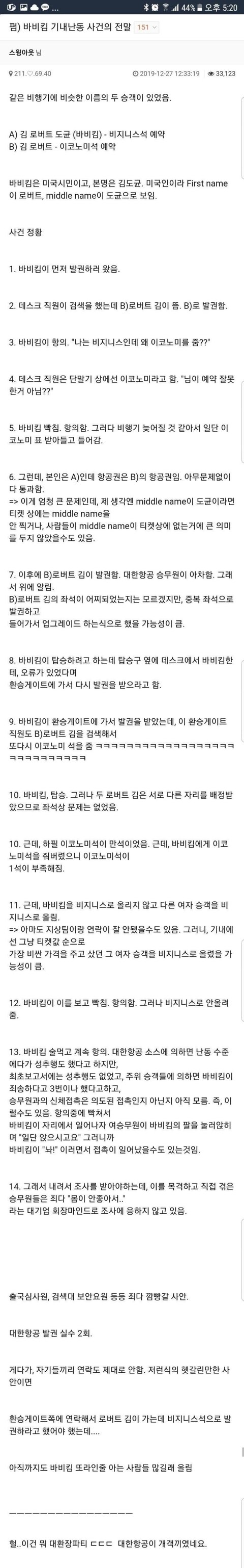 심지어 911사건이후 기내소동에 엄청 민감해진 미국도 애초에 대한항공이 일을 똑바로 했었음 이런 사건도 안생겼다하여 바비킴에게 무혐의를 내렸는데 한국에 돌아간 뒤 형사입건됨ㅋ. 대한항공측은 자기들 죄 덮어씌우려고 있지도 않은 바비킴이 승무원들 상대로 성추행도 했다로 언론플레이하고.