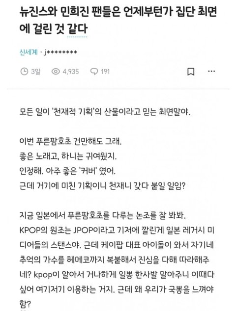 난리 났다구 언급 많이 되길래 봤는데 이게 왜 그렇게 까지... 싶긴 했어. 머 깐거 같은데 와중에 하니 목소리 들린다구 쌩라이브인 것 마냥 글쓰는 애들도 있어서 머지... 싶었고.