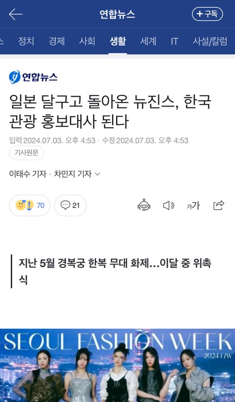 (맨날 뉴진스 비호감됐다 이미지 나락갔다 등등 이딴 가스라이팅하는글 도배됐는데 정작 이미지 좋아야만 가능한 한국 홍보대사 낙점 ㅋㅋㅋ)