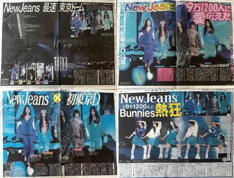 일본 신문 1면 거의 뉴진스가 장식