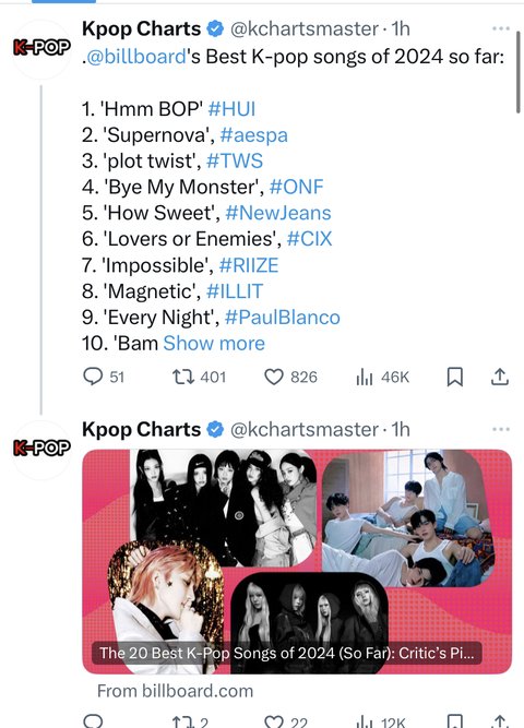 빌보드 비평가 선정 케이팝 상반기 일위래