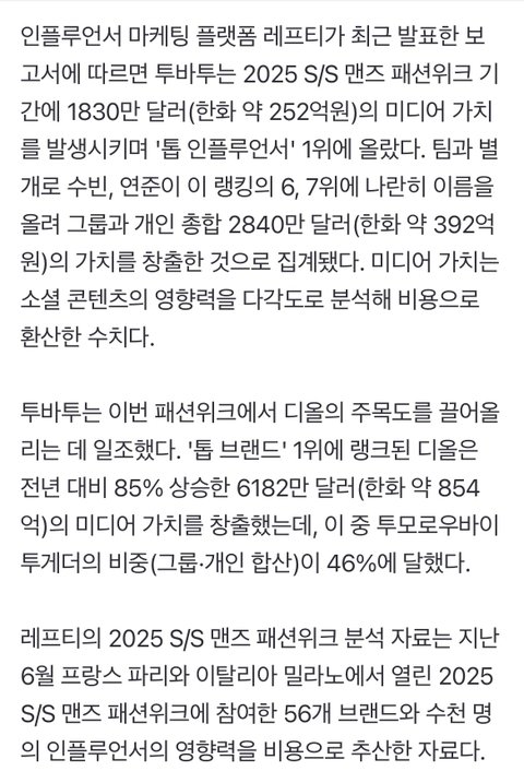 투바투, 디올 앰버서더 영향력…"392억원 가치 창출"